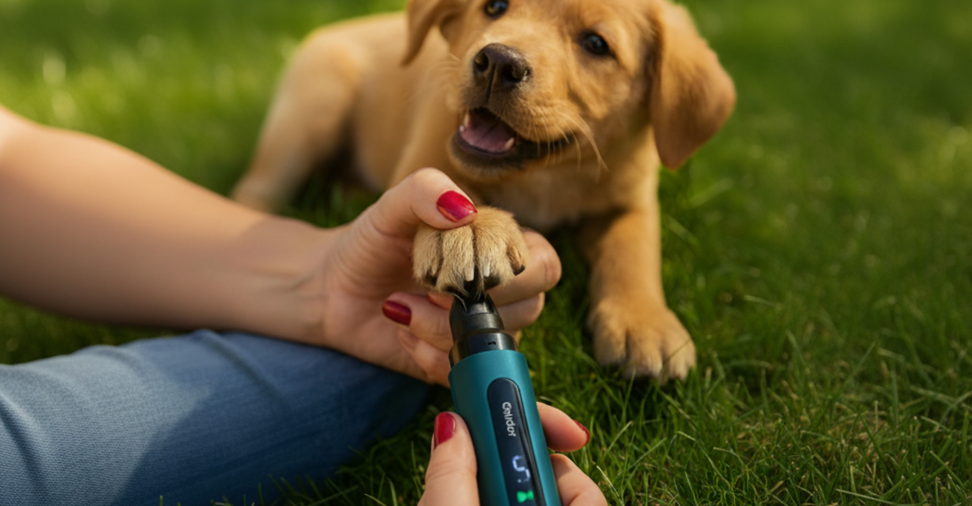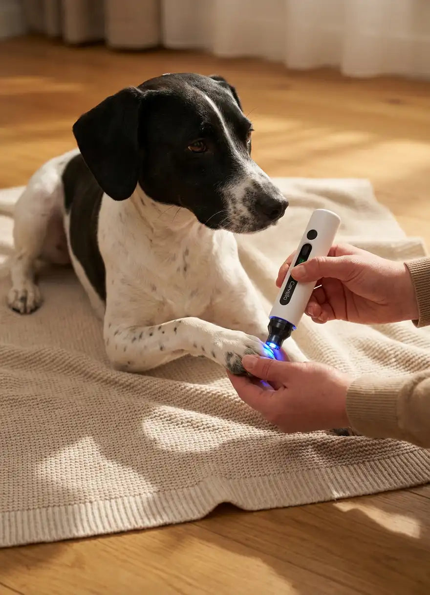 Der NailBuddy wurde für genau diese Momente entwickelt: Dein Hund liegt entspannt bei dir, du hältst sanft die Pfote und schleifst die Krallen sicher statt zu schneiden. Flüsterleise, mit LED-Licht und Schutzkappe – damit ihr Krallenpflege ohne Angst, Blut und Tierarztstress erlebt.